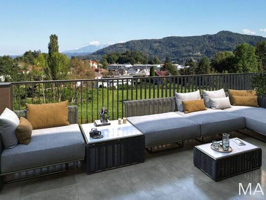 Das stylische Apartment mit einer Wohnfläche von ca. 86 m² befindet sich im 1. Obergeschoss der 2020 errichteten kleinen Anlage und thront regelrecht über dem Wörthersee. Es verfügt über einen großzü...