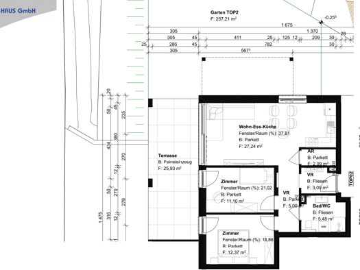 Hier bietet sich die Chance eine großzügige 2-Zimmer-Gartenwohnung, bestehend aus Vorraum, Wohn-/ Esszimmer mit Küche Terrasse & Garten, Abstellraum, Schlafzimmer, Schrankraum, Bad, WC, in Wolfsb...