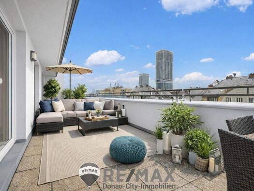 "106 m² Maisonette + 2 Terrassen | Top-Lage Donauzentrum/U1" Zum Verkauf gelangt diese großzügige Maisonettewohnung auf zwei Ebenen in sehr gefragter Lage in der Wagramer Straße - Nähe Donau Zentrum ...