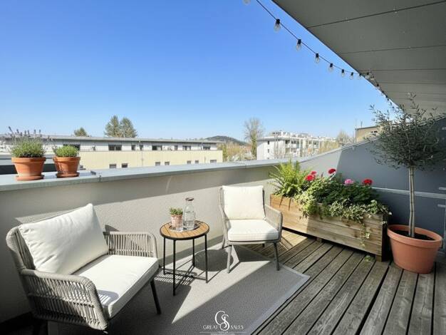 Diese erst 2020 errichtete Eigentumswohnung (68,3 m2) mit Terrasse (15 m2), Garten (30 m2), einem freien und einem überdachten Parkplatz ist in kompletter Ruhelage gelegen und wie ein kleines Reihenh...