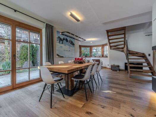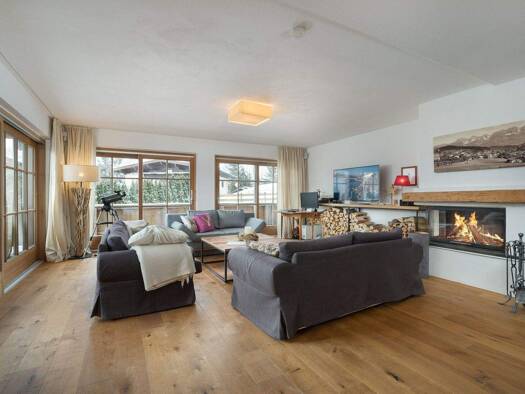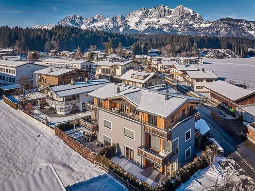 Diese exklusive Maisonette-Wohnung im Erdgeschoss begeistert mit einem traumhaften Blick auf das Kitzbüheler Horn sowie den Wilden Kaiser und bietet auf 145 m² alles für ein luxuriöses, entspanntes L...