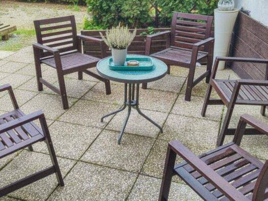 TOP 7 - Erdgeschoßwohnung im Altbau (Anbau) ca. 105 m² + 17 m² Terrasse. Zugang: Direkt begehbar über einen kleinen Vorgarten, welcher (mit ca.17 m²) eine Terrasse bildet und als Gartenterrasse ...