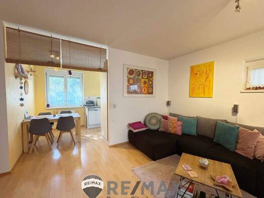 Objektbeschreibung 2 Zimmer Gartenwohnung mit ca. 20m2 Terrasse und ca. 100m2 Garten. Carport Parkplatz direkt vom Garten begehbar. Sehr gute Ausstattung. Hausheizung Wärmepumpe mit PV Anlage am Flac...
