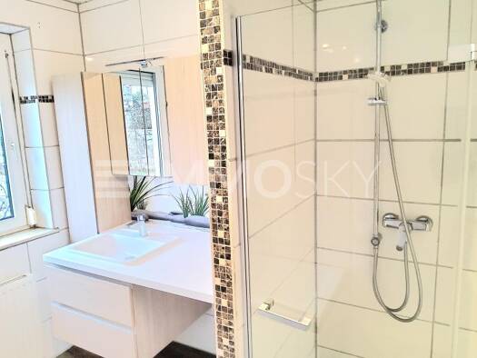 Wohnen im Grünen, nahe genug zur Stadt! 360° Rundgang online! Zum Verkauf steht diese ruhig gelegene, sehr helle 3 Zimmer-Wohnung mit sonnigem Eigengarten (inkl. Whirlpool & Biohort Gartenhütte) ...