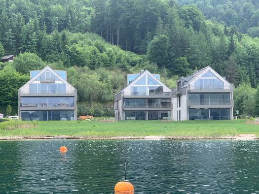 SEE.LEBEN Mondsee Exklusives Wohnen mit Seezugang und Bergpanorama. Fünf moderne Häuser mit insgesamt 12 Eigentumswohnungen und einer luxuriösen Villa schaffen ein außergewöhnliches Wohnambiente in t...