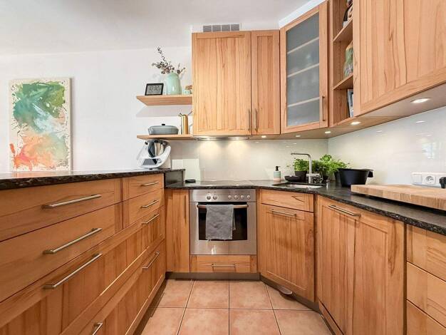 Diese charmante 3-Zimmer-Erdgeschosswohnung aus dem Baujahr 2002 überzeugt durch eine durchdachte Raumaufteilung, eine sonnige Terrasse mit Gartenanteil sowie hochwertige, geschmackvolle Schreiner-Ei...