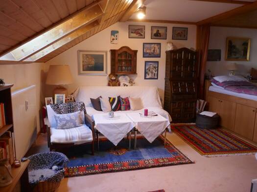 Die Wohnung befindet sich im 2 OG eines Mehrfamilienhauses und entstand durch die Zusammenlegung von 2 Wohnungen und verfügt deshalb über 2 Bäder und 2 WC. Über eine offene Treppe gelangt man in den ...