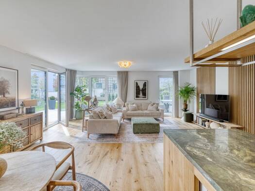 Diese neuwertige und elegante 4-Zimmer-Wohnung, die erst im Jahr 2024 bezogen wurde, überzeugt durch ihre hochwertige Ausstattung und eine außergewöhnlich große Gartenfläche von rund 385 m², ein Merk...