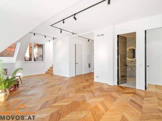 Täglich Natur genießen: Spazieren, Laufen oder Schwimmen - Eingang Gloriette ist in nur 6 Minuten erreichbar! Objektbeschreibung Diese außergewöhnlich helle, klimatisierte Dachgeschoss-Maisonette (oh...
