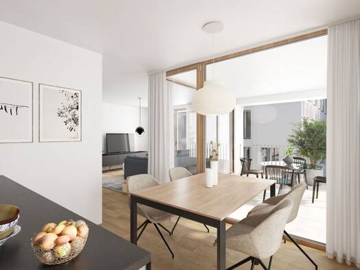 86 m² Wohnfläche | 20 m² Terrasse | 6 m² Keller attraktiver Wohn-Koch-Essbereich hochwertige Einbauküche mit Bora-Herd Schlafzimmer mit optimaler Ost-Ausrichtung vollausgestattetes Badezimmer mit bod...