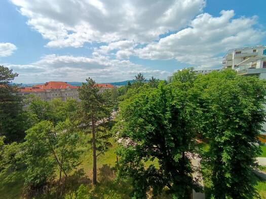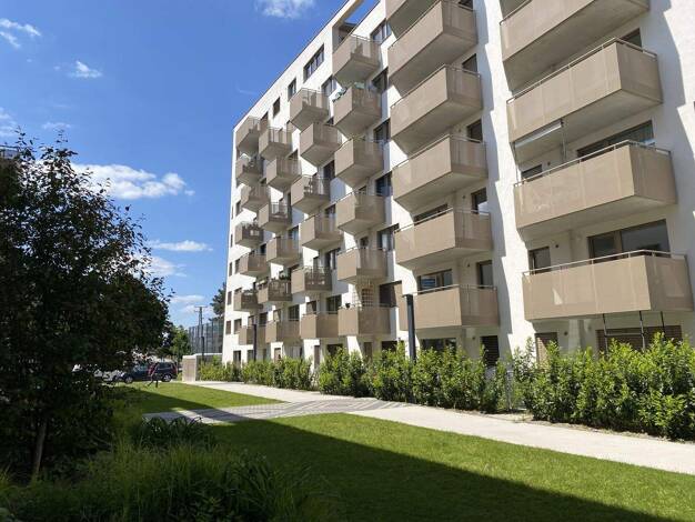 VORSORGEWOHUNG IM PREMIUMBEREICH HIGHLIGHTS: Blick in den Jutta Steier Park - vermietet bis März 2028 - moderne Architektur Zum Verkauf gelangt ein 2-Zimmer Loggiaeigentum im 5. Liftstock einer attra...