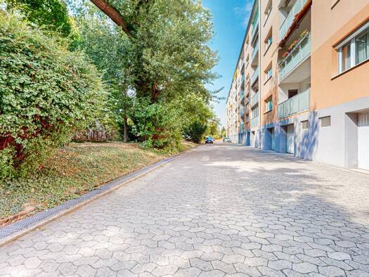 Die Wohnung befindet sich im Hochparterre eines 1963 errichteten, wieder aufgebauten Neubaus mit südseitiger Gartenterrasse (22m²) mit Außenmarkise mit Fernsteuerung und Zugang zum Allgemeingart...