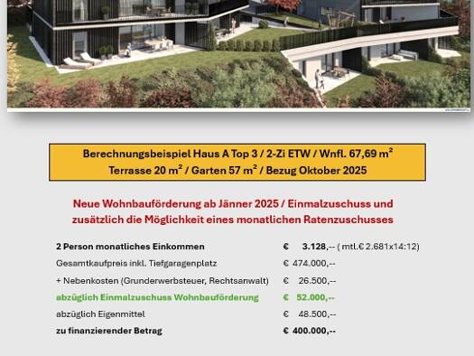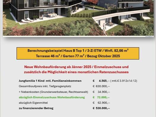 Der Neubau wurde in anspruchsvoller Architektursprache mit 13 Wohnungen/ BAUTEIL B - 3 Wohnebenen/ Liftstock, errichtet. Eine qualitativ hochwertige & energieeffiziente Bauweise in Massivbau, die...