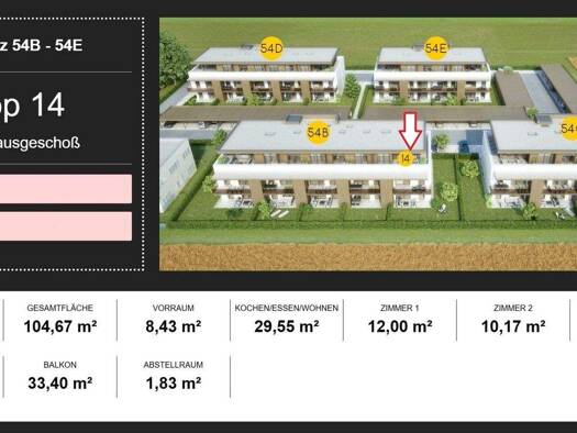Neuwertige, sonnige, räumlich gut eingeteilte, sofort beziehbare Eigentumswohnung mit großem, teilüberdachtem Ostbalkon. Die zu verkaufende Wohnungen Top 10 ist mittig im 1 OG angeordnet und hat...