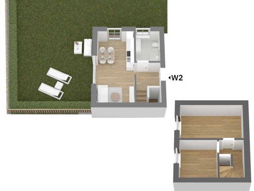 Diese Duplex-Zweizimmerwohnung überzeugt im ersten Obergeschoss mit einer geräumigen Wohnküche, einem Badezimmer mit Dusche, zwei praktischen Abstellräumen und einer sonnigen Südterrasse. Eine Treppe...