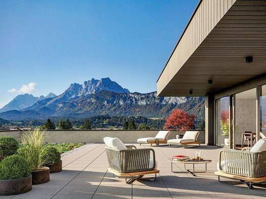 Diese außergewöhnliche Penthousewohnung begeistert mit einer harmonischen Kombination aus hochwertigsten Materialien und einer unvergleichlichen Aussicht auf den Wilden Kaiser und das Kitzbüheler Hor...