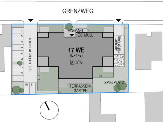 In grüner, ruhiger Wohnlage - Grenzweg 11 -, dennoch nur fünf Fahrradminuten vom Bahnhof entfernt, haben wir ein kleinteiliges Niedrigenergiewohnhaus mit siebzehn Eigentumswohnungen in den Größe...