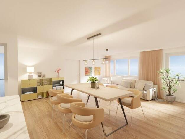 Diese helle Wohnung überzeugt durch ihre angenehme Raumwirkung und eine klare, durchdachte Aufteilung. Der offen gestaltete Wohnbereich verbindet Wohnen, Kochen und Entspannen zu einem fließenden Leb...