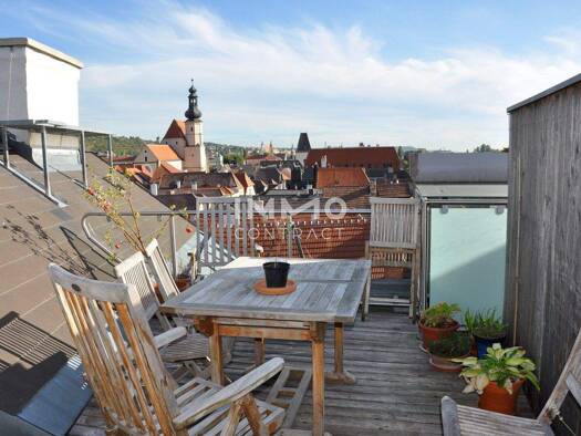 Außergewöhnliche Dachterrassenwohnung mit Rundumblick auf Donau & Altstadt Stein Diese exklusive Dachterrassenwohnung vereint urbanes Lebensgefühl mit einzigartiger Aussicht und besonderer Archit...