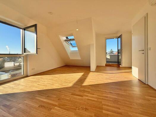Dieses exklusive Dachgeschoss-Penthouse erreichen Sie mit einem eigenen Lift. Es gliedert sich in große Wohnküche (ca. 59,47 m²), Master-Bedroom mit en-Suite-Bad mit Badewanne, Dusche und WC sowie Te...