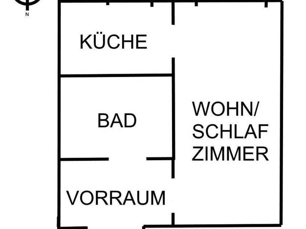 Die teilrenovierte Kleinwohnung im Hochparterre beinhaltet einen Wohn-Schlafraum, eine möblierte Küche mit Elektrogeräten, ein Badezimmer mit Dusche und Toilette, Abstellkammerl und Vorraum sowie ein...