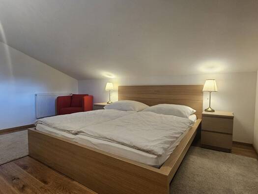 Die Garçonnière ist mit Designermöbeln, einem Boxspring-Doppelbett, einem großen Bad mit Dusche, Parkettboden mit Fußbodenheizung, TV und WLAN sowie einer Nespresso-Kaffeemaschine und einem Wasserkoc...