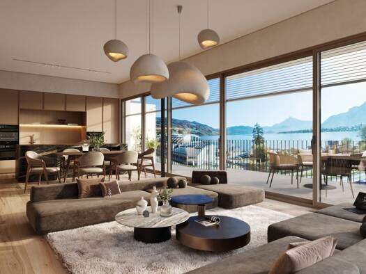 Terrassenwohnung der Extraklasse mit Südwestblick, Panoramaflair und luxuriöser Ausstattung In privilegierter Hanglage über dem malerischen Mondsee erwartet Sie eine Wohnresidenz, die kompromisslose ...