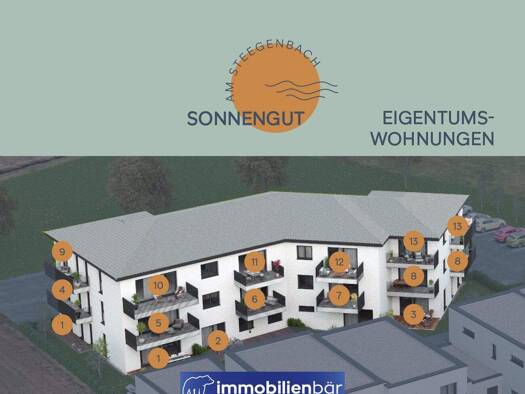 WOHNGUT AM STEEGENBACH - SONNENGUT - STILVOLLES WOHNEN IN STEEGEN - 13 FÖRDERBARE EIGENTUMSWOHNUNGEN MIT HOCHWERTIGER AUSSTATTUNG Am Binderweg 10 in Steegen entsteht mit dem Haus Sonnengut ein w...