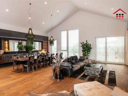 Luxuriöser Wohnraum auf ca. 134m², 4 Zimmer, gepaart mit einer ca. 98m² großen L-förmigen offenen Terrasse hoch über den Dächern von St. Georgen im Attergau. Das Luxus Petnhouse mit einer Raumhöhe vo...