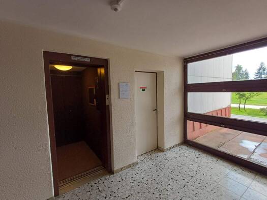 Das Appartement befindet sich im 1. OG. eines 1972 erbauten ca. 150-Parteienwohnhauses. Zur Wohnung gelangt man wahlweise über die Treppe oder den Aufzug. Die Lage im Gebäude der Wohnung ist sehr idy...