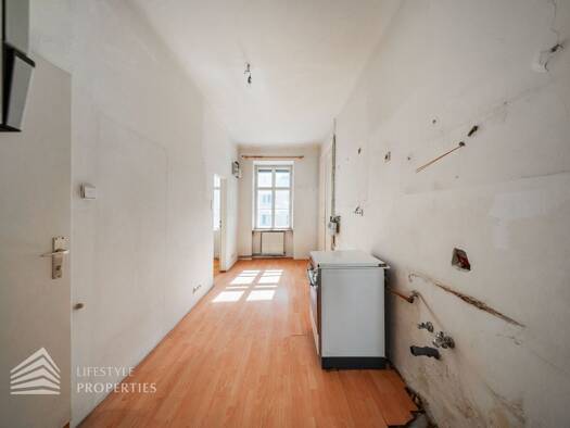 ALTBAU - NASCHMARKT - 4 ZIMMER Beim Naschmarkt gelangt im 1. Liftstock eines schönen Eckzinshauses eine sanierungsbedürftige Wohnung zum Verkauf. Die helle 4-Zimmer-Wohnung verfügt auf 125m² Woh...