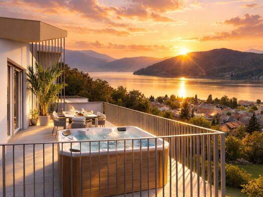 In erhöhter Aussichtslage der begehrten Alexanderhofsiedlung thront dieses außergewöhnliche Penthouse über dem Millstätter See - ein Ort, an dem Architektur, Ausblick und Atmosphäre in vollendeter Ha...