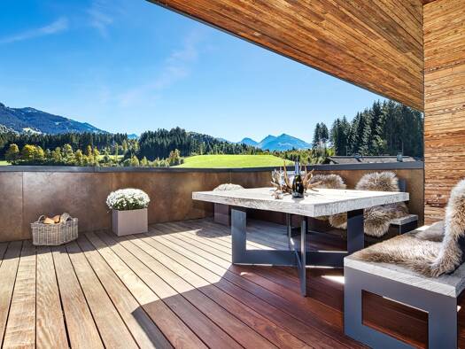 Modernes Penthouse in St. Johann in Tirol mit ca. 90?m² Wohnfläche, offener Wohn-/Essbereich mit Galerie und zwei Balkonen (28?m²). Genießen Sie den Südwest-Blick auf Wilder Kaiser & Kitzbüheler ...