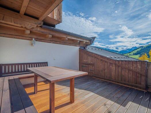 Dieses alpine Luxus-Penthouse bietet auf 144 m² Wohnfläche jeden erdenklichen Komfort und darüber hinaus einen fantastischen Ausblick auf die Kitzbüheler Alpen. Das im Jahr 2022 neu errichtete Pentho...