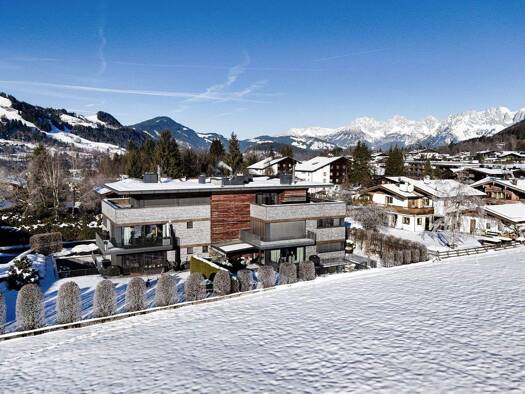 Kurzbeschreibung Alpines Penthouse mit 360-Grad-Panoramablick Objekt Dieses moderne Mehrfamilienhaus im Chaletstil mit vier exklusiven Wohneinheiten befindet sich in einer der Top-Lagen von Kitzbühel...