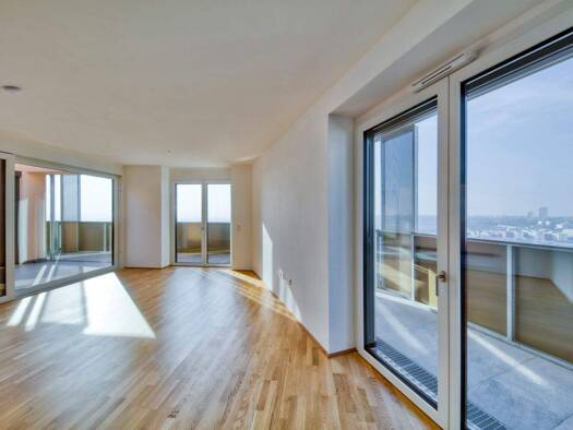 SKYLINE-FEELING IM 34. STOCK DES Q-TOWER MIT SÜDOST-AUSRICHTUNG Diese ca. 112?m² große 3-Zimmer-Wohnung vereint den perfekten Grundriss mit modernem Wohngefühl. Ein offener Wohn- und Essbereich mit g...