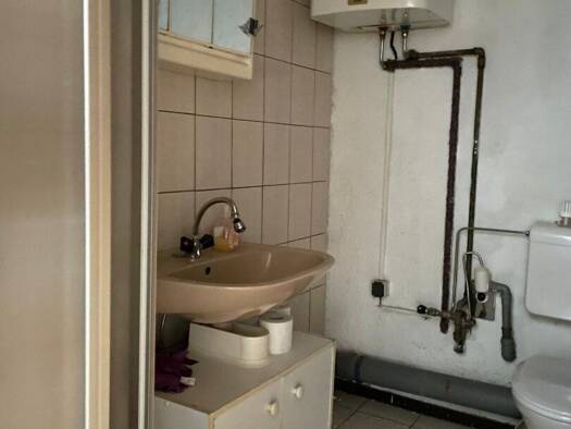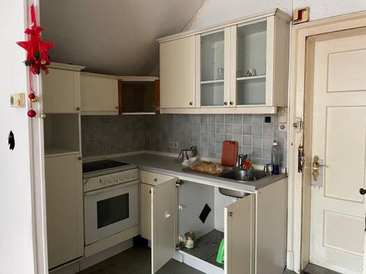 Die teilrenovierte Kleinwohnung im Hochparterre beinhaltet einen Wohn-Schlafraum, eine möblierte Küche mit Elektrogeräten, ein Badezimmer mit Dusche und Toilette, Abstellkammerl und Vorraum sowie ein...