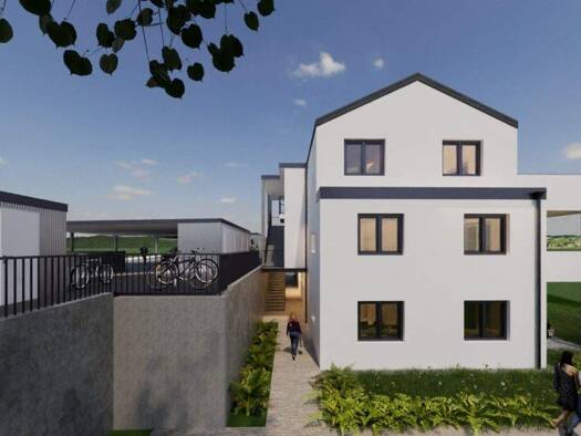 Das Neubauprojekt erstreckt sich über drei Etagen und fügt sich harmonisch in die idyllische, ruhige Umgebung ein, die durch ihre Wohnqualität und ausgezeichnete Infrastruktur überzeugt. Einkaufsmögl...