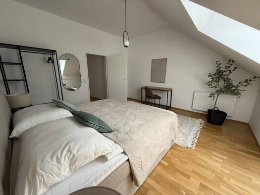 Diese Wohnung vereint eine außergewöhnliche Architektur, hochwertige Materialien und eine überraschende Ruhe in unmittelbarer Nähe des Grazer Zentrums. Auf ca. 59,56 m² Wohnfläche