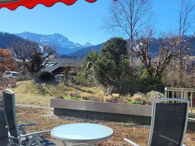 Sehr schöne helle Terrassenwohnung mit Garten. Sonnige Südausrichtung mit Blick auf Alpspitze, Hausberg und Wettersteingebirge. Große Gartenterrasse mit Markise. Sehr gut vermietet mit einer Rendite ...