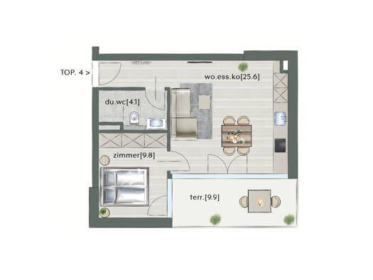 Wohnung: Die ca. 54 m² große 2-Zimmer-Wohnung besticht durch einen modernen Schnitt und helle Räume. Die großzügige Terrasse mit ca. 35 m² bietet viel Platz für Erholung und lädt zum Entspannen im Fr...