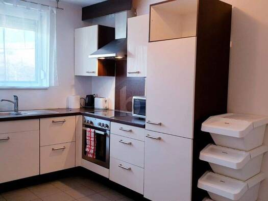 Kurzbeschreibung 3 Zimmerwohnung, Küche mit Einbauküche, Bad, Balkon, Kaminofen, Kellerabteil und Carport. Allgemeine Gartennutzung Inventar: Einbauküche, diverse Möbel, Kaminofen, Waschmaschine und ...