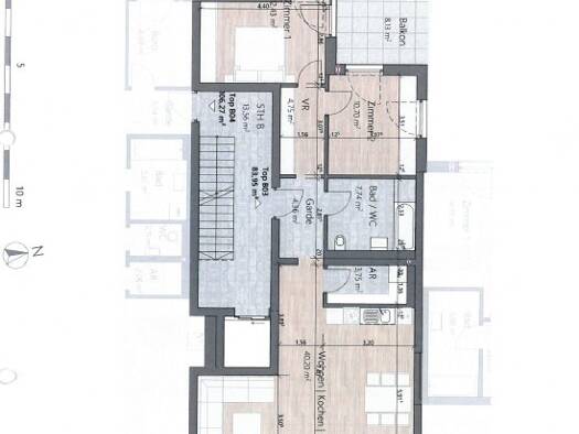 3-Zimmer-Wohnung mit 74,56 qm Wfl. im Dachgeschoss eines Mehrfamilienhauses mit Balkon - bestehend aus Vorraum, Diele, Bad, WC, Garderobe, Küche, Wohnzimmer, Schlafzimmer, Kinderzimmer und Balkon - d...