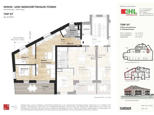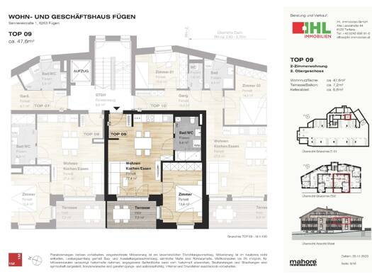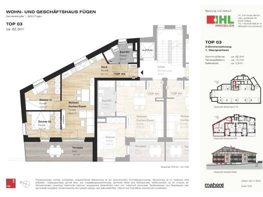 9 Wohnungen in sonniger, zentraler Lage In zentraler und sonniger Lage realisierten wir in der Sennereistraße 1 in Fügen ein Wohn- und Geschäftshaus. Im Erdgeschoss entstand das Büro der Skiliftgesel...