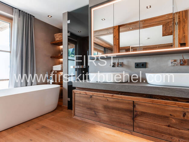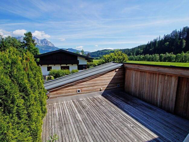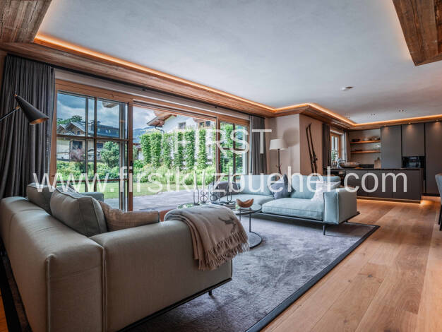 Diese exklusive Maisonette-Wohnung im Erdgeschoss begeistert mit einem traumhaften Blick auf das Kitzbüheler Horn sowie den Wilden Kaiser und bietet auf 145 m² alles für ein luxuriöses, entspanntes L...