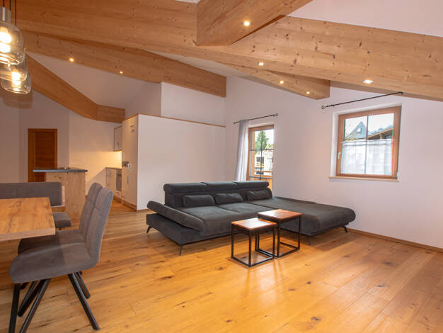In einer zentrumsnahen Lage von Reith bei Kitzbühel befindet sich diese großzügige Wohnung in einem schönen Landhaus. Die Immobilie erstreckt sich über das komplette Dachgeschoss des Objekts. Eine Sk...