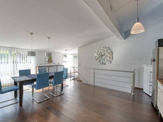 Die schöne Immobilie befindet sich in einem kleinen Mehrparteienhaus und erstreckt sich über das oberste Stockwerk inklusive Dachgeschoss. Großzügige ca. 160 m² reine Wohnfläche verteilen sich exklus...