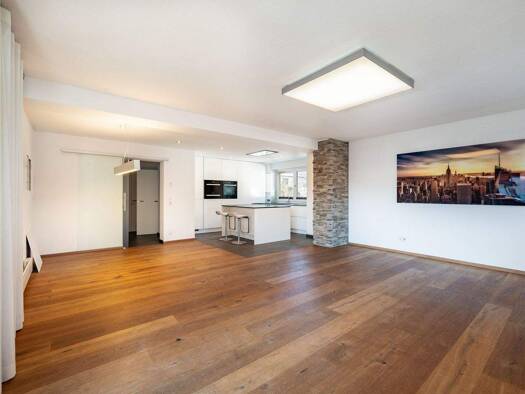 Das im ersten Obergeschoss eines architektonisch anspruchsvoll gestalteten Wohnhauses gelegene Appartement überzeugt durch Gemütlichkeit, durchdachte Raumplanung und eine erstklassige Ausstattungsqua...