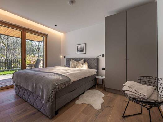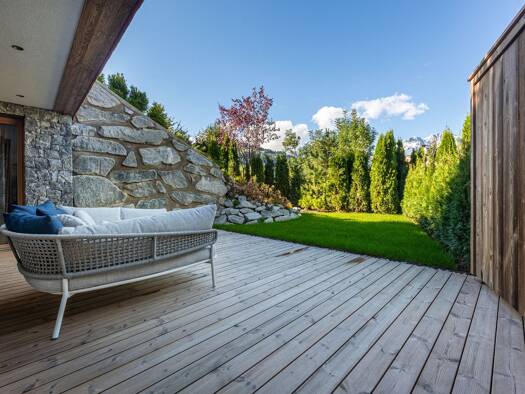 Dieses neuwertige Gartenapartment wurde in idyllischer Lage an der Kirchberger Ache errichtet und besticht mit einem wunderschönen Ausblick auf den Gaisberg. Der alpine Baustil dieses trendigen Wohnh...
