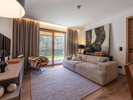 Die hier angebotene Luxus-Gartenwohnung W1 verfügt über eine beeindruckende Wohn- und Nutzfläche von rund 225 m² und besticht durch ihre außergewöhnliche Lage mit Blick ins Tal und auf das majestätis...